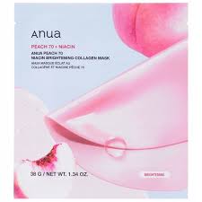 Peach 70 Niacin Brightening Collagen Mask to maska o innowacyjnej formule, która zmienia kolor podczas aplikacji, zawierająca w sobie odżywczy ekstrakt z brzoskwini oraz kolagen. Dzięki swojej intensywnej formule, maska ujędrnia i wygładza skórę, jednocześnie poprawiając jej koloryt. Zawarty niacynamid (witamina B3) skutecznie rozjaśnia skórę, a kolagen zapewnia intensywne nawilżenie i regenerację. Maska w postaci esencji ma właściwości łagodzące, nawilżające oraz ujędrniające, pozostawiając skórę gładką i odżywioną.