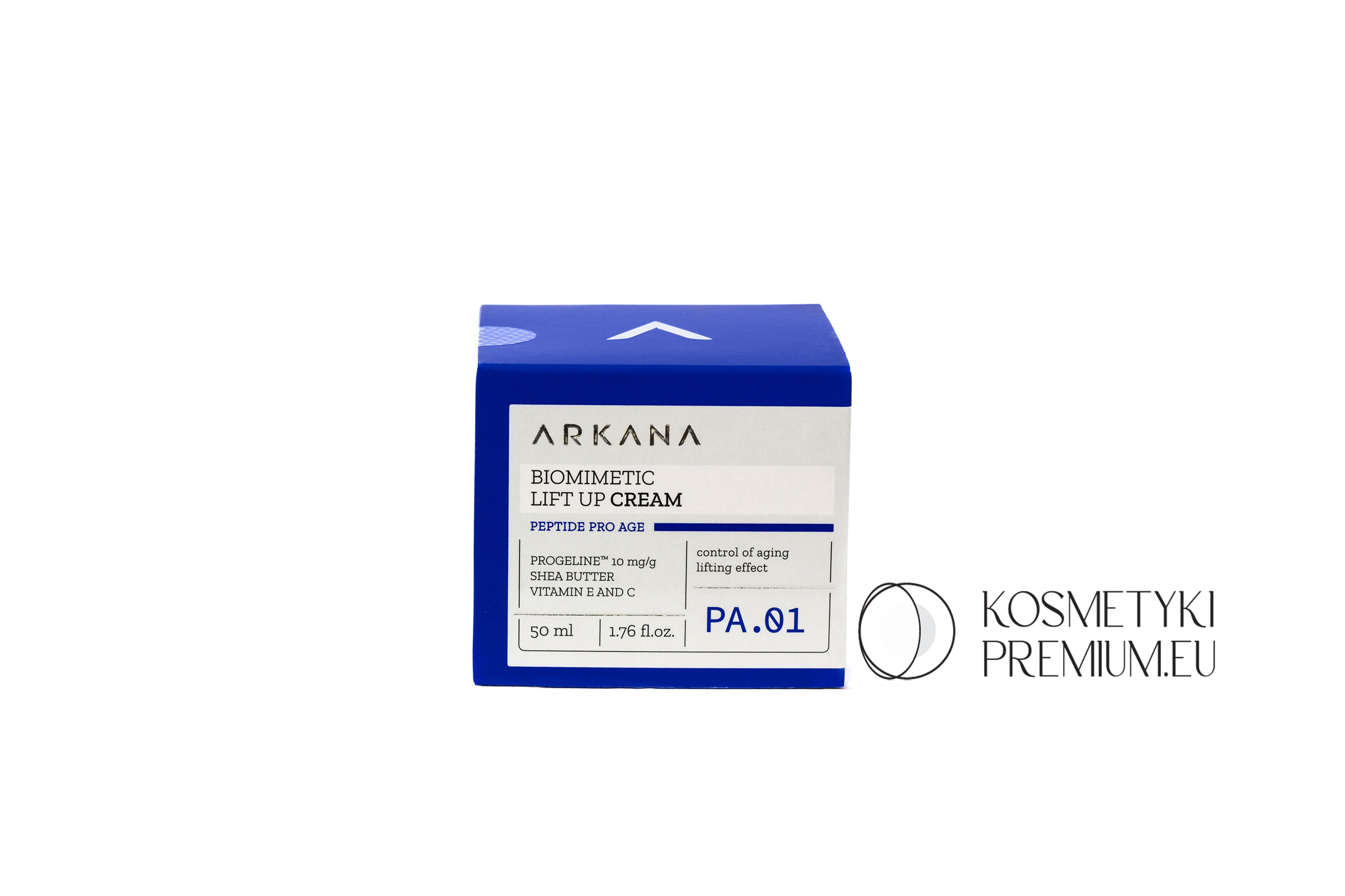 Arkana Biomimetic Lift Up Cream to ekskluzywny biomimetyczny krem z efektem lift up. Zawiera technologicznie rewolucyjny tripeptyd, Progeline, który aktywnie hamuje syntezę progeryny - białka odpowiedzialnego za starzenie się.