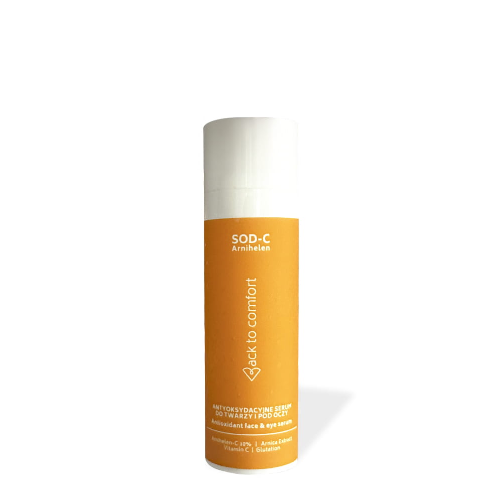Antyoksydacyjne serum do twarzy i pod oczy to delikatna, bezzapachowa formuła, opracowana specjalnie dla pielęgnacji cery wrażliwej. Wykorzystując unikalne połączenie boostera antyoksydacyjnego Arnihelen-C 10%, serum wspomaga pielęgnację skóry wrażliwej, działając antyoksydacyjnie i łagodząco. Dzięki helenaninie obecnej w formule, cennej substancji aktywnej, możemy pielęgnować zarówno wrażliwą skórę twarzy, jak i okolicę oczu podatną na zasinienia. Ciesz się naturalnym blaskiem i komfortem swojej skóry z SOD-C Arnihelen antyoksydacyjne serum!