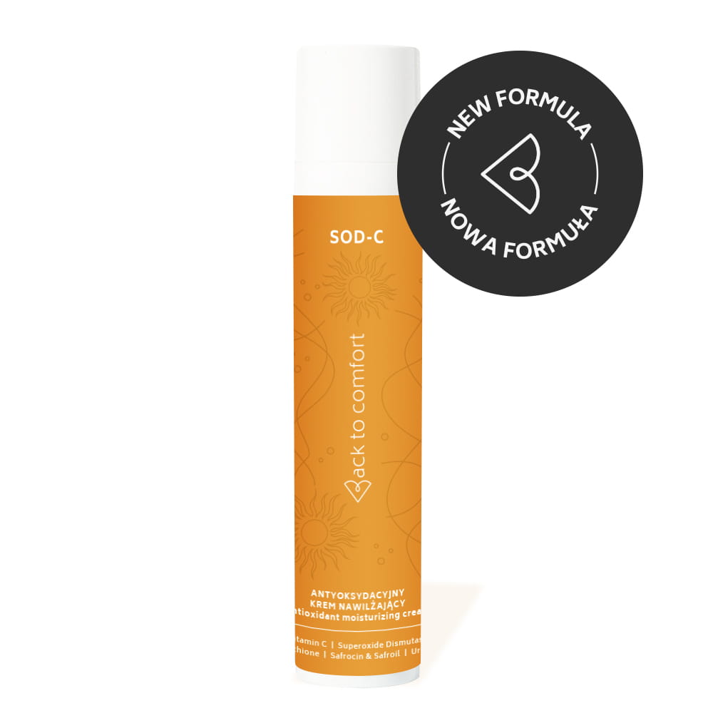 SOD-C to innowacyjny krem nawilżający, stworzony z myślą o intensywnej ochronie skóry przed stresem oksydacyjnym i fotostarzeniem. Zaawansowana formuła łączy dwufazowy ekstrakt z szafranu wytwarzany w naszym Laboratorium Symbiosis w Poznaniu, stabilną witaminę C oraz dysmutazę ponadtlenkową i glutation, które neutralizują wolne rodniki, wspierając naturalne procesy regeneracyjne skóry. Hydroksyapatyt stymuluje syntezę kolagenu i wzmacnia barierę naskórkową, zapewniając efekt wygładzenia i matowienia. Mocznik intensywnie nawilża i wspomaga prawidłowe rogowacenie naskórka, przywracając skórze zdrowy wygląd. Lekka, aksamitna konsystencja szybko się wchłania, nie obciążając skóry.
