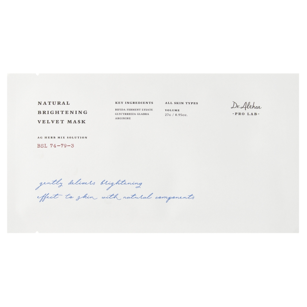 Strona główna » Pielęgnacja » Twarz » Dr.Althea - Natural Brightening Velvet Mask, 27 g - rozjaśniająca maska do twarzy w płachcie