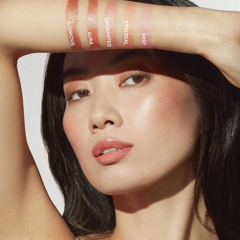 Nałóż na policzkach i rozprowadź w kierunku skroni, aby uzyskać promienny blask.Składniki: