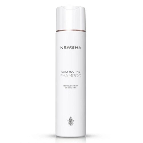 Newsha Daily Routine Shampoo to łagodny szampon stworzony do codziennej pielęgnacji wszystkich typów włosów, w tym także delikatnych i skłonnych do przetłuszczania się. Jego lekka, a zarazem skuteczna formuła zapewnia dokładne oczyszczenie bez podrażniania skóry głowy. Dzięki zawartości ekstraktu z rozmarynu, znanego ze swoich właściwości odżywczych i wzmacniających, szampon stymuluje cebulki włosowe, poprawia krążenie i wspomaga naturalny wzrost włosów. Regularne stosowanie sprawia, że włosy stają się lekkie, świeże i pełne blasku.