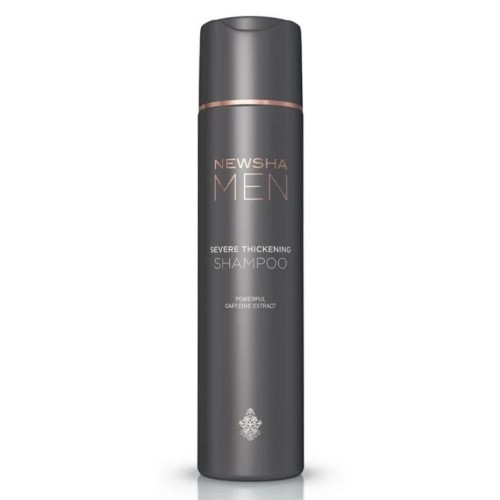 Newsha Men Severe Thickening Shampoo to specjalistyczny szampon wzmacniający, stworzony z myślą o mężczyznach, którzy chcą zagęścić swoje włosy, wzmocnić cebulki i przeciwdziałać ich wypadaniu. Dzięki innowacyjnej formule z kofeiną nie tylko oczyszcza skórę głowy, ale także stymuluje mikrokrążenie, pobudzając cebulki włosowe do wzrostu.
