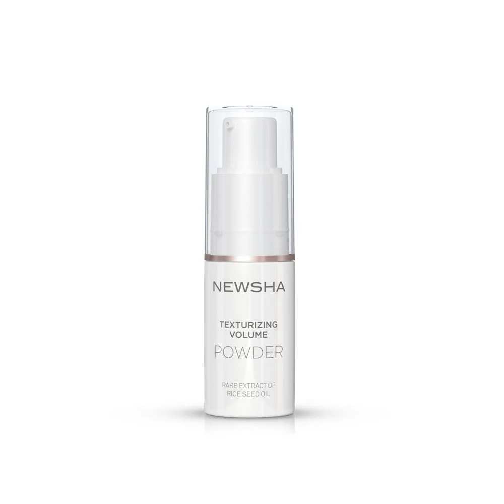 NEWSHA Texturizing Volume Powder to prawdziwy cudowny puder, który zapewnia większą objętość u nasady i większą przyczepność na długościach. Twoje włosy zyskują naturalną objętość z matowym wykończeniem - więc nie obawiaj się twardych, lepkich i błyszczących pasm! Zawarty olej z kiełków ryżu ma działanie antyoksydacyjne i ma cudowną właściwość pochłaniania promieni UVA i UVB. Dzięki temu Twoja czupryna włosów nie tylko wygląda oszałamiająco, ale jest również lepiej chroniona przed szkodliwym promieniowaniem słonecznym. Opatentowana głowica natryskowa sprawia również, że aplikacja pudru objętościowego jest superłatwa. Dzięki innowacyjnej głowicy natryskowej w mgnieniu oka dodasz włosom objętości: