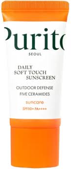 PURITO SEOUL Daily Soft Touch Sunscreen SPF 50+ PA++++ – krem przeciwsłoneczny o jedwabistej i lekkiej konsystencji, przeznaczony dla skór tłustych i mieszanych. Formuła zawiera szerokie spektrum filtrów UVA i UVB, które chronią skórę przed szkodliwym działaniem promieniowania słonecznego, zapewniając długotrwałą ochronę aż do 10 godzin. Wzbogacona koreańską wąkrotą azjatycką, pantenolem i pięcioma rodzajami ceramidów wzmacnia barierę ochronną skóry, łagodzi oraz głęboko nawilża. Krem szybko wchłania się, nie pozostawiając białych śladów ani uczucia lepkości. Pozostawia matowe wykończenie.