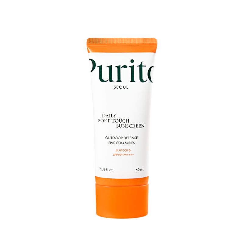PURITO SEOUL Daily Soft Touch Sunscreen SPF 50+ PA++++ – krem przeciwsłoneczny o jedwabistej i lekkiej konsystencji, przeznaczony dla skór tłustych i mieszanych. Formuła zawiera szerokie spektrum filtrów UVA i UVB, które chronią skórę przed szkodliwym działaniem promieniowania słonecznego, zapewniając długotrwałą ochronę aż do 10 godzin. Wzbogacona koreańską wąkrotą azjatycką, pantenolem i pięcioma rodzajami ceramidów wzmacnia barierę ochronną skóry, łagodzi oraz głęboko nawilża. Krem szybko wchłania się, nie pozostawiając białych śladów ani uczucia lepkości. Pozostawia matowe wykończenie.