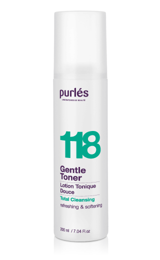 Purles 118 Gentle Toner - Delikatny tonik dedykowany dla każdego typu cery, idealny do stosowania każdego dnia. W swym składzie zawiera kompozycję kwasów owocowych, które pobudzają komórki naskórka do odnowy. Kwas glikolowy jest alfa-hydroksykwasem , który działa keratolitycznie, dzięki czemu jego stosowanie wykazuje efekt rozjaśniający przebarwienia, wyrównujący koloryt oraz przeciwstarzeniowy. Kwas winny posiada właściwości zwężające pory, delikatnie rozjaśniające i przede wszystkim oczyszczające skórę. Za wygładzenie oraz przyspieszenie usuwania martwych komórek naskórka odpowiada kwas mlekowy. Z kolei kwasy jabłkowy i cytrynowy sprawiają, że cera wygląda świeżo i promiennie dziki ujednoliceniu jej odcienia i nawilżeniu. Efektem stosowania toniku jest delikatne złuszczenie martwych warstw naskórka, dzięki czemu skóra zyskuje blask, ponadto staje się miękka, wygładzona o wspaniale wyrównanym kolorycie. Kosmetyk stanowi także wspaniałe przygotowanie do dalszej pielęgnacji skóry.